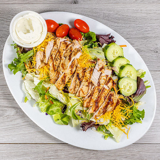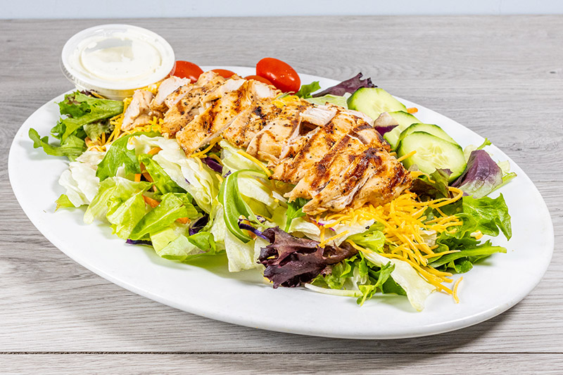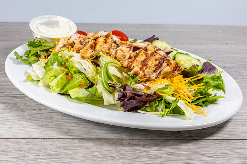 Marinated and grilled Gulf shrimp served on a mixed green salad.