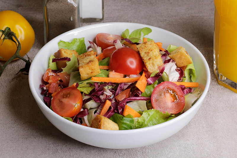Marinated and grilled Gulf shrimp served on a mixed green salad.